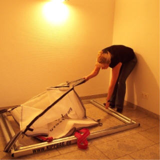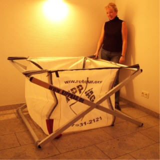 Sammelgestell wird zur Aufnahme des Transportsackes einfach auf dem Boden